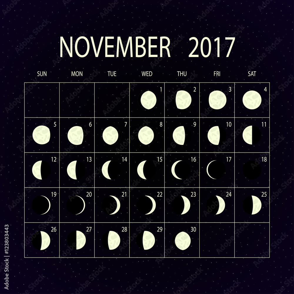 Moon Phases Calendar for 2017. November. Vector Illustration
